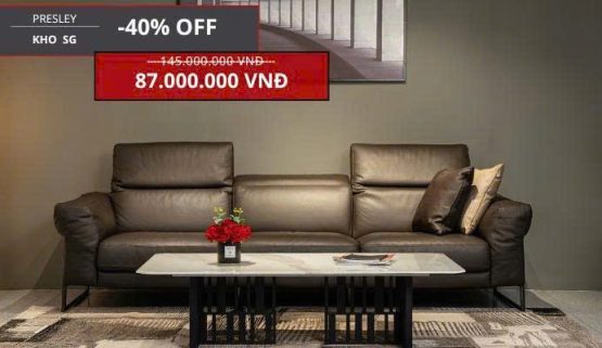 Sofa da Presley có cấu trúc nhẹ trên thiêt kế chân kim loại mỏng, kết hợp với tay vin mềm mại, Presley mang vẻ yêu kiều thôi thúc bạn ngắm nhìn , đến gần và nhân ra sự mềm mại của phân đệm ngồi sâu và tựa đầu cao sẽ là điều bạn mong chờ